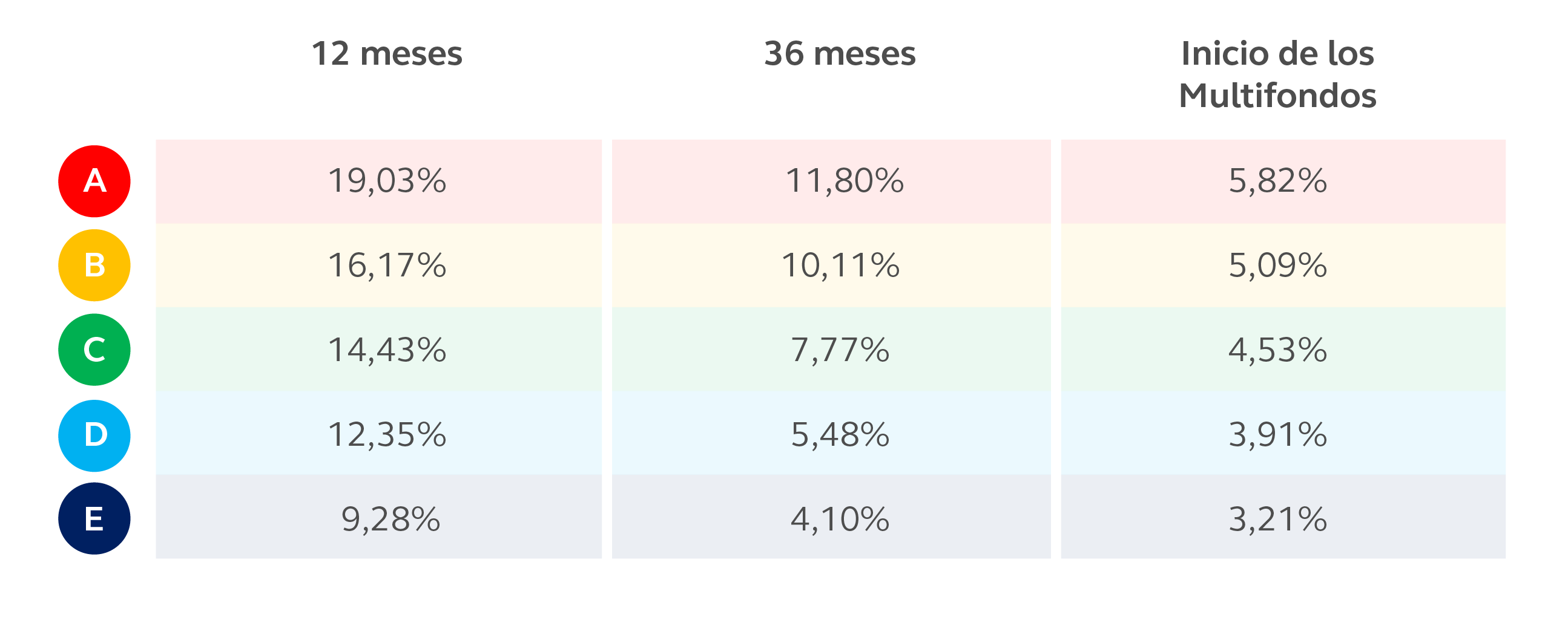Febrero fue un mes de retornos positivos para todos los Multifondos. Los fondos A, B y C se beneficiaron del buen desempeño de las inversiones en instrumentos extranjeros, tanto de renta variable como de renta fija. Por su parte, los fondos D y E también se beneficiaron de estos activos, y del buen rendimiento
