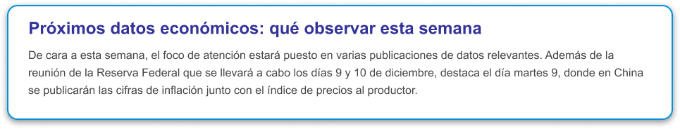 Posterior a la publicación del dato, las expectativas de un recorte en la tasa de política monetaria en la reunión del 16 de diciembre superaban ligeramente el 70%, manteniéndose de esta forma como el escenario base para los inversionistas.