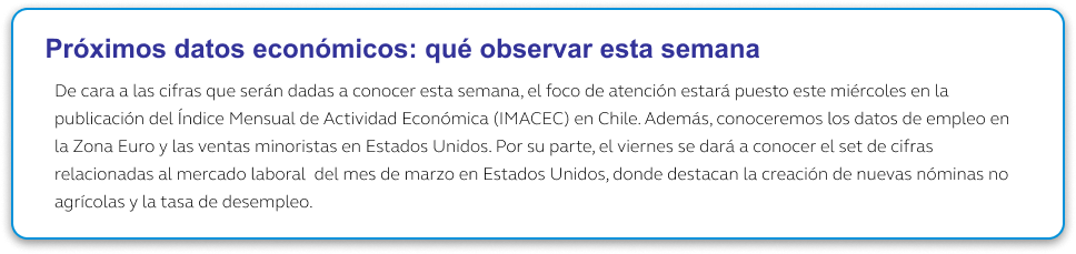 El Consejo del Banco Central de Chile decidió mantener la tasa de política monetaria en 4,5%, decisión adoptada por la unanimidad de sus miembros y que estuvo en línea con lo esperado por el mercado. El comunicado adoptó un tono más cauto respecto del entregado en enero, reflejando el deterioro del escenario externo producto del conflicto en Medio Oriente. Entre los principales factores identificados se encuentran el aumento del precio del petróleo, el endurecimiento de las condiciones financieras globales, la depreciación del peso y el repunte de las expectativas de inflación de corto plazo. En este contexto, el Banco Central advirtió que, en la medida en que persistan los riesgos inflacionarios, el espacio para recortes de tasa se ve más limitado.